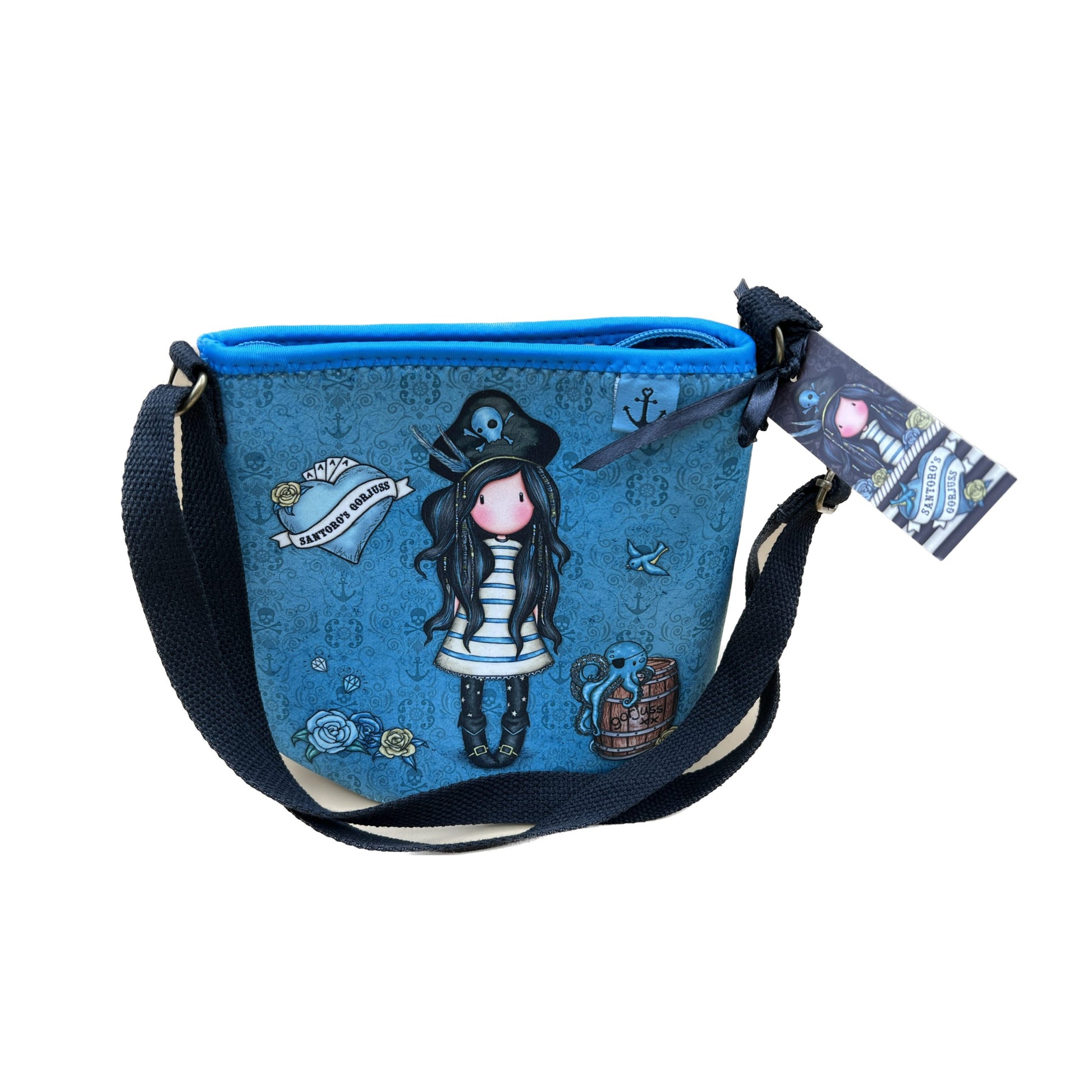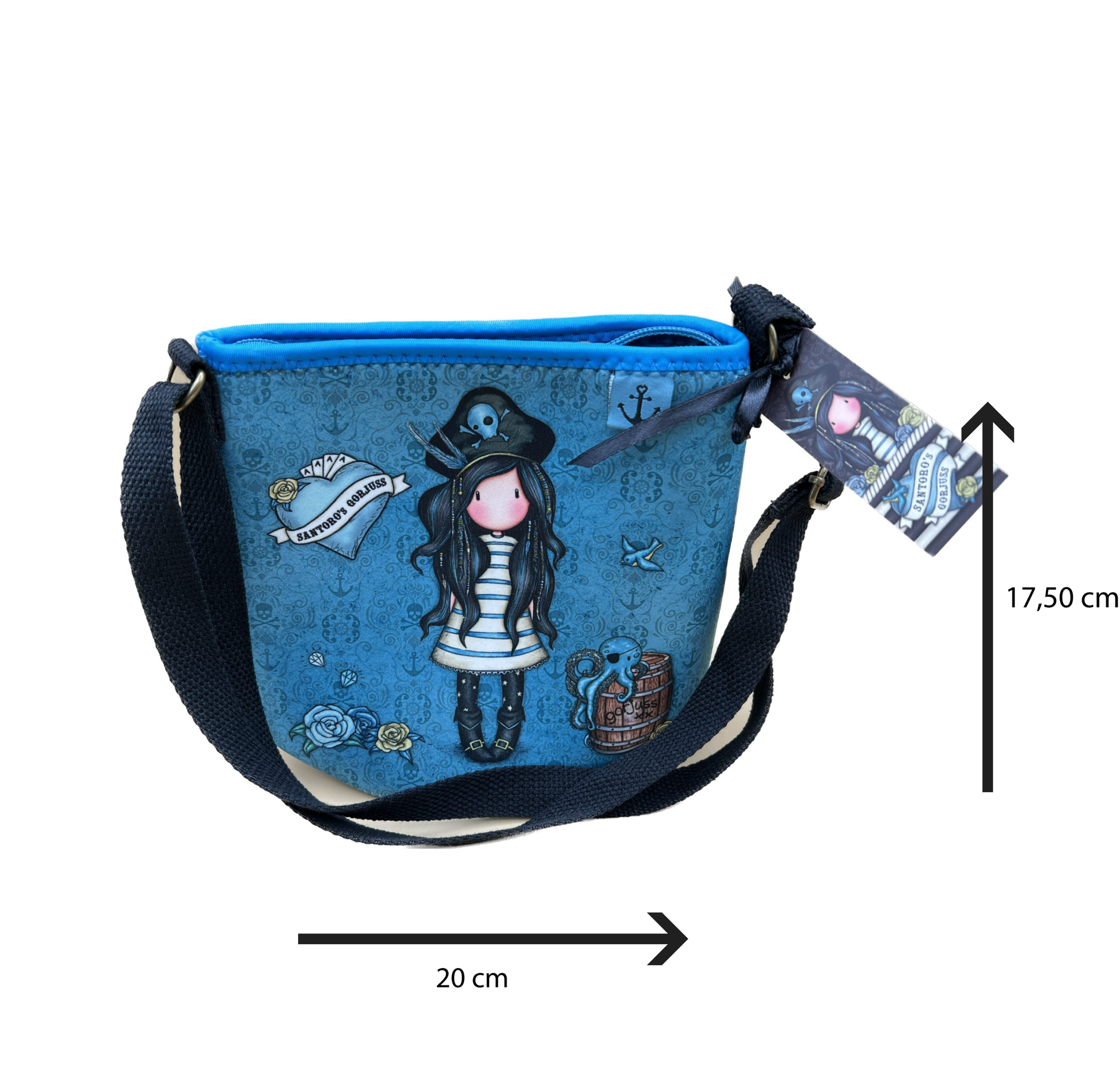 La dimensione perfetta per l’uso quotidiano, questa borsetta in neoprene Gorjuss presenta un’opera d’arte originale di Black Pearl. Completa di una tracolla regolabile, chiusura a zip e etichetta decorativa pip.
