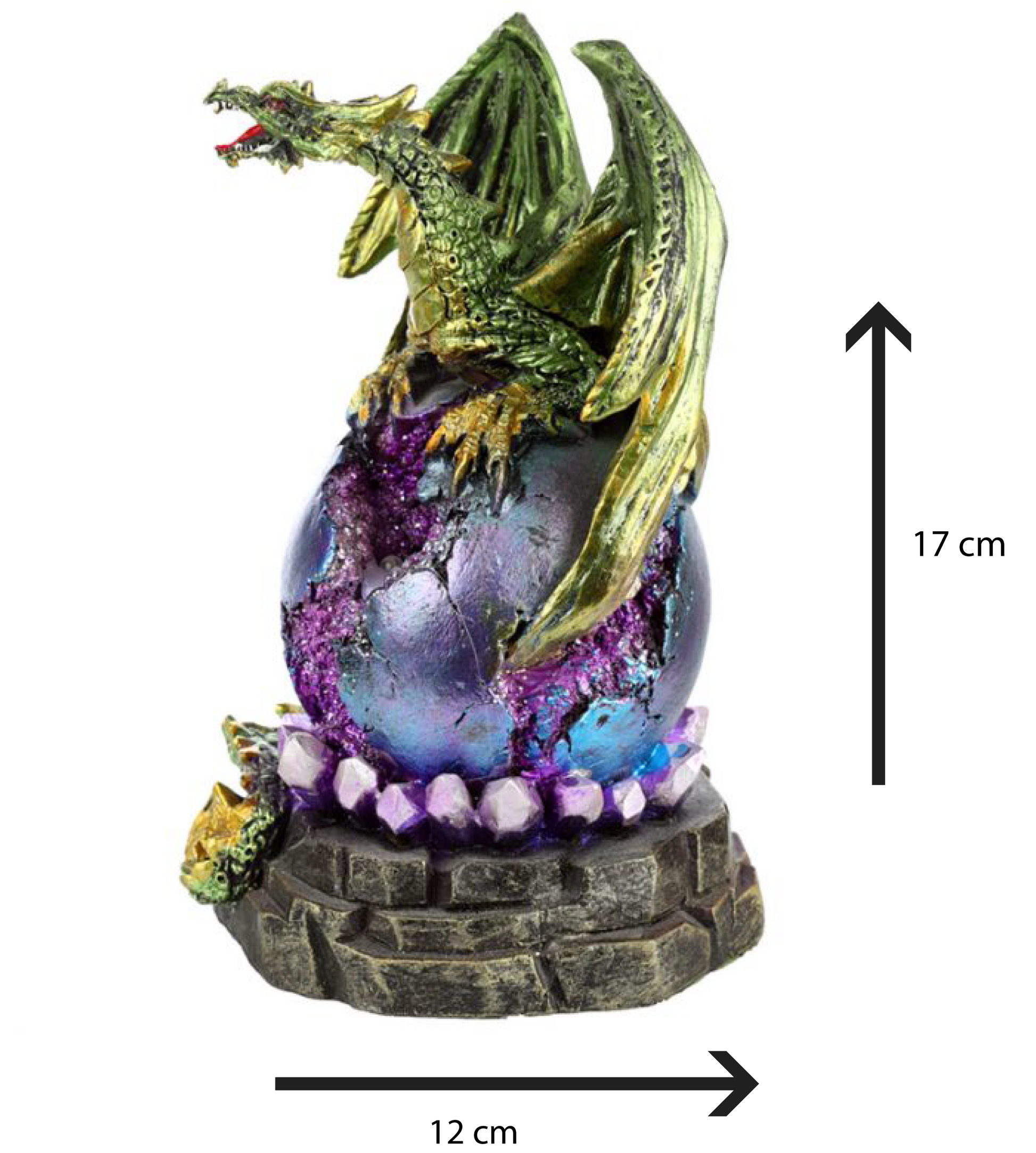Drago verde con Uovo su Piedistallo con LED – Drago della Leggenda Oscura