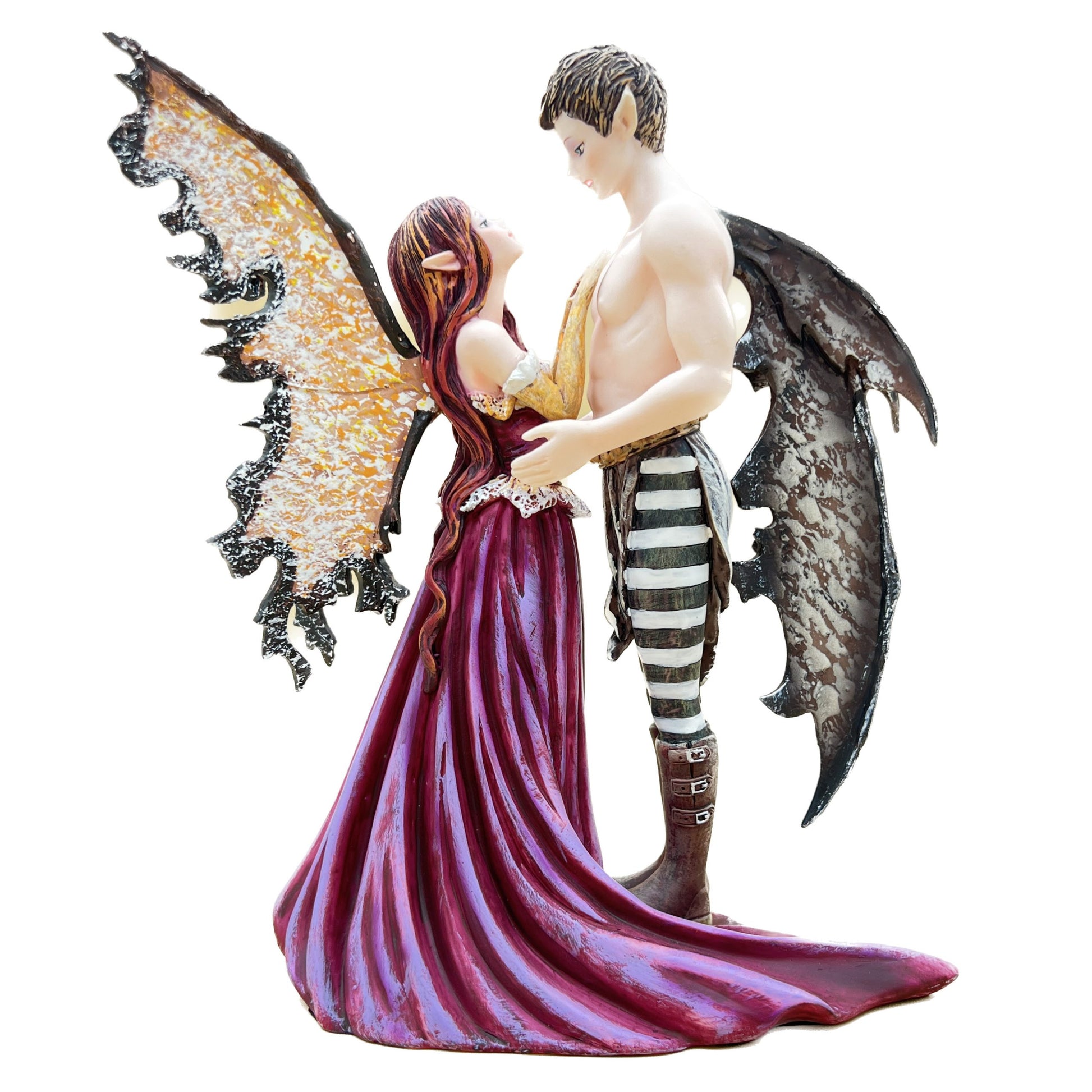 Bellissima coppia di fate innamorate rifinita nei minimi dettagli.