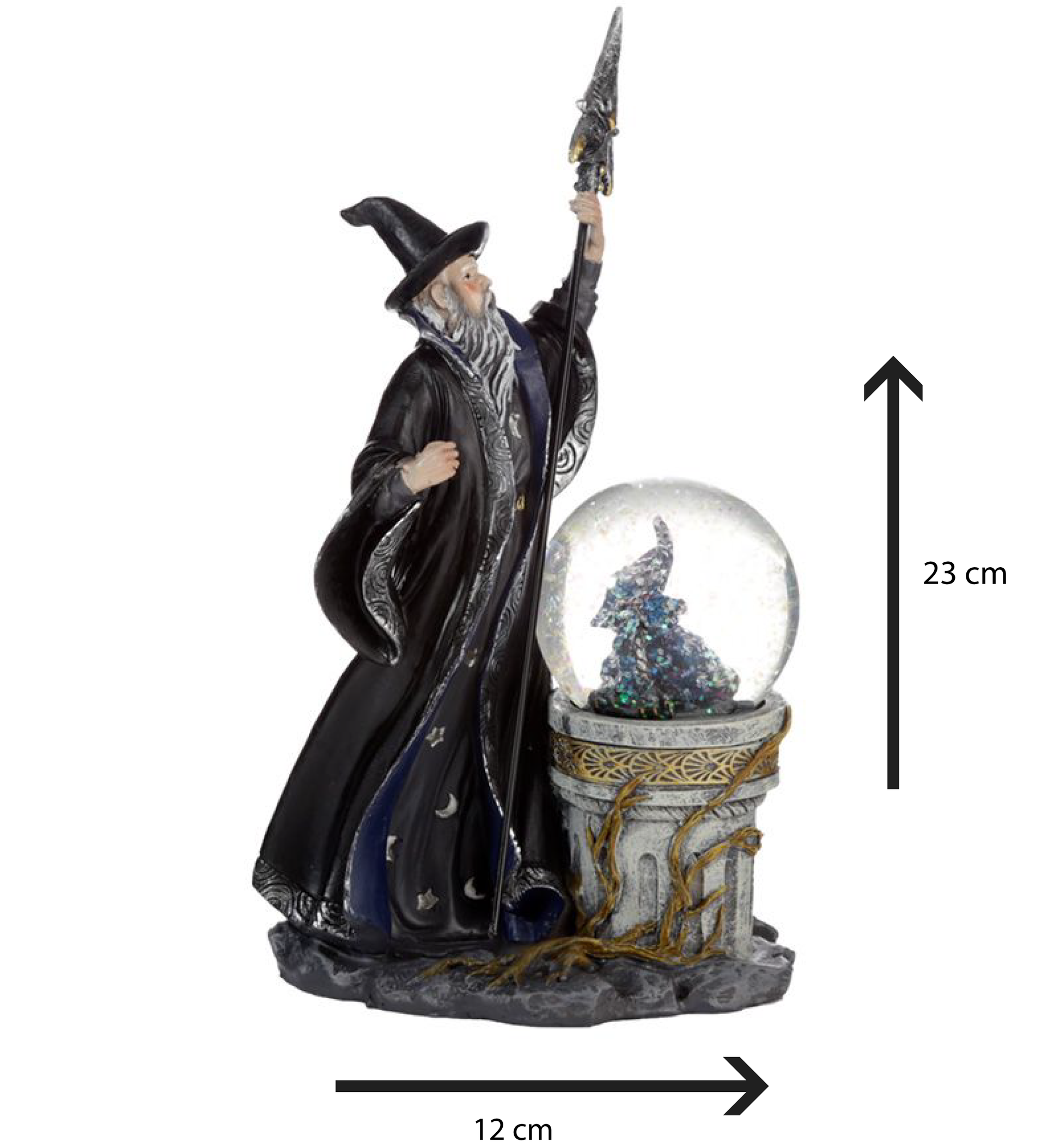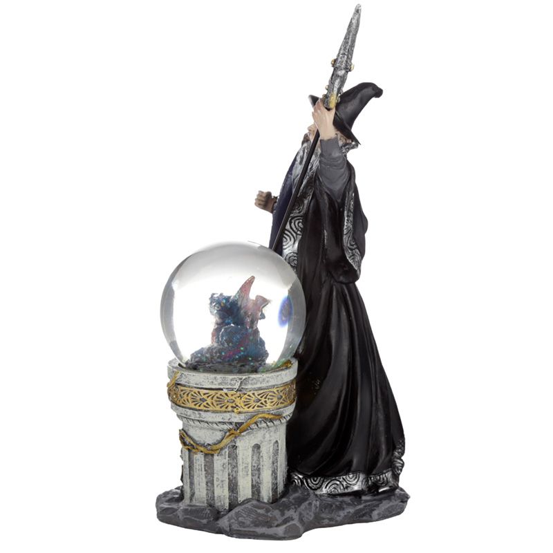 Lasciati incantare dalla maestosità di questo mago che impugna una lancia davanti ad una sfera di vetro al cui interno riposa un drago.