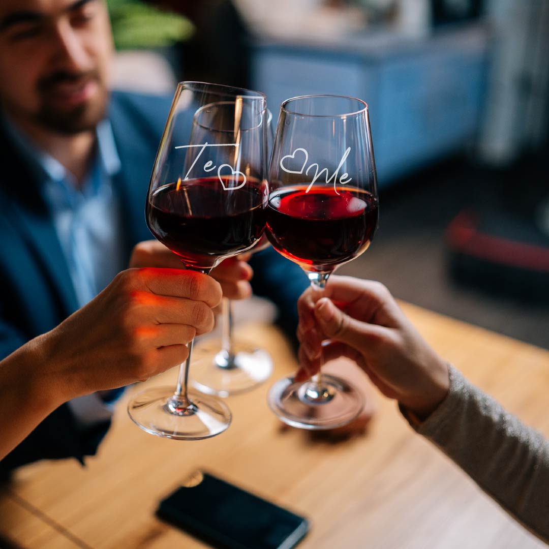 - Scritta indelebile: Le parole "Io" su un calice e "Te" sull’altro sono incise con precisione, per resistere al tempo senza mai sbiadire.