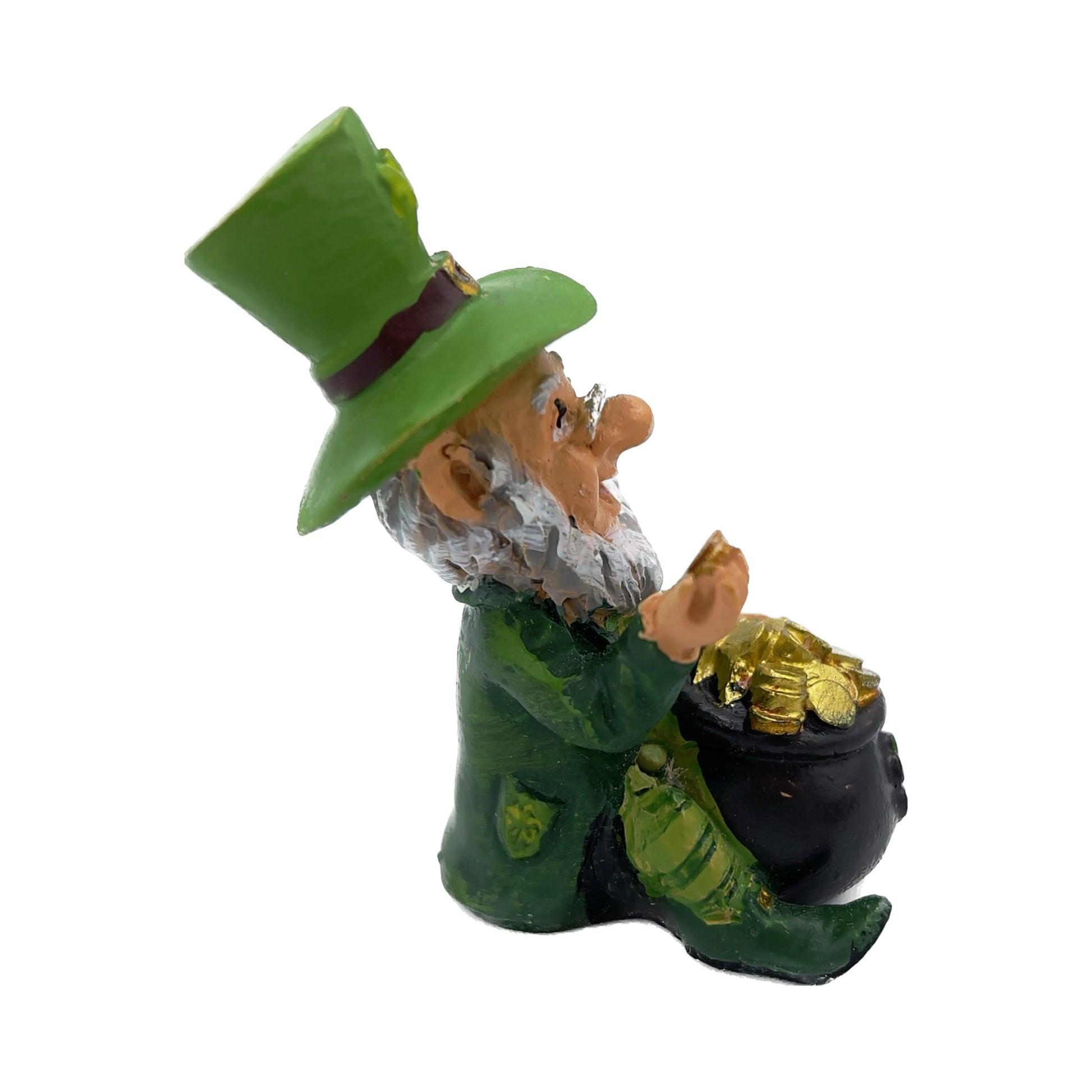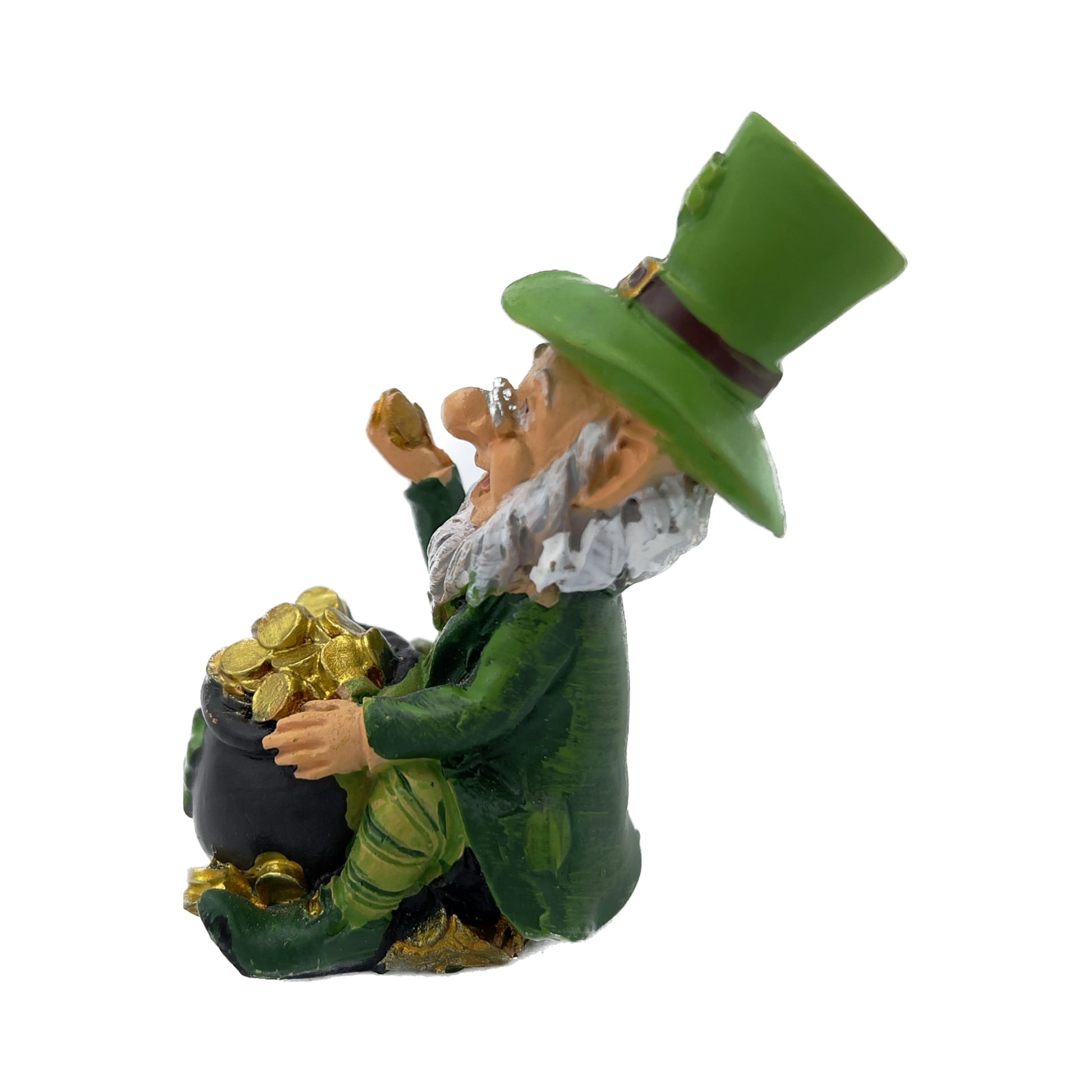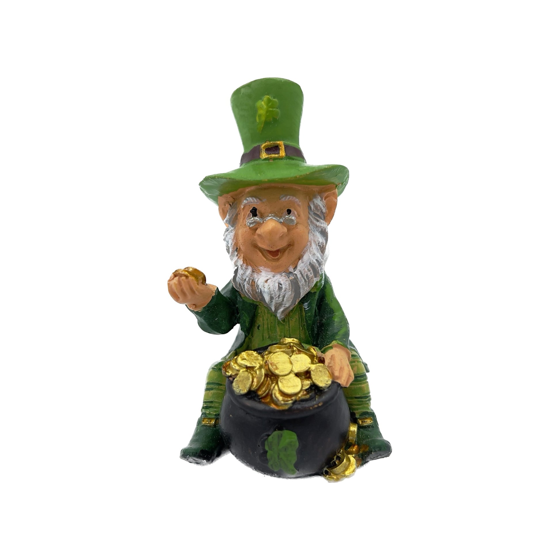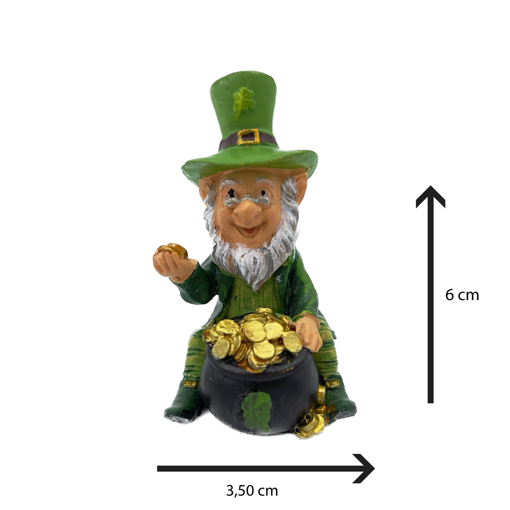 Bellissimo mini folletto di San Patrizio con pentola piene di monete d'oro