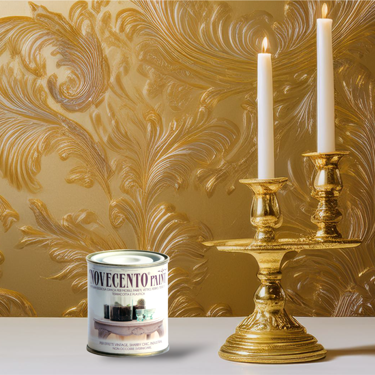Vernice metallica color oro dal sapore antico, perfetta per donare raffinatezza ed eleganza ad ogni progetto e perché no, conferire un gusto barocco all’ambiente.