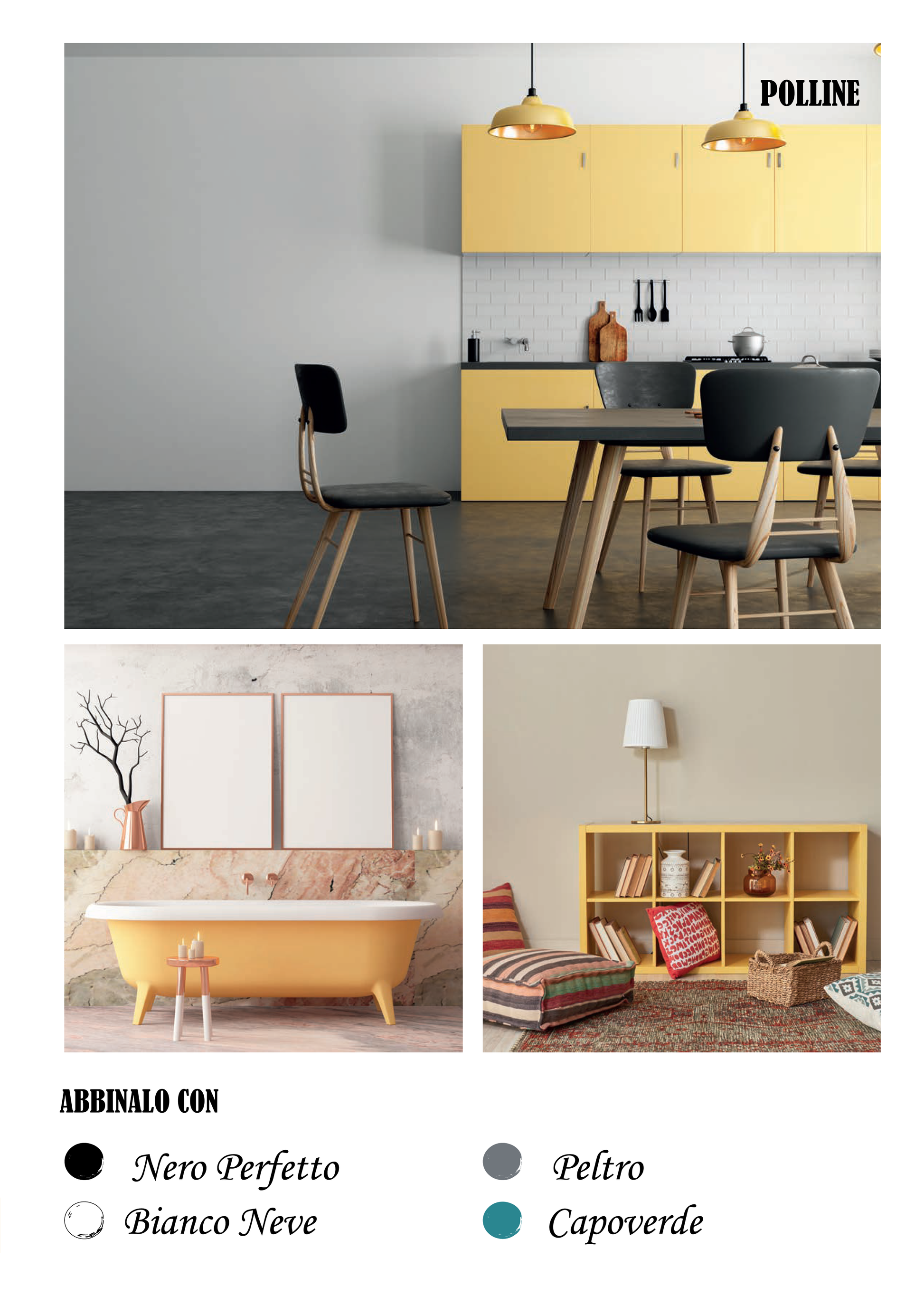 Tutti i colori sono perfettamente in armonia e miscelabili tra di loro o applicabili in sovrapposizione e a contrasto.
