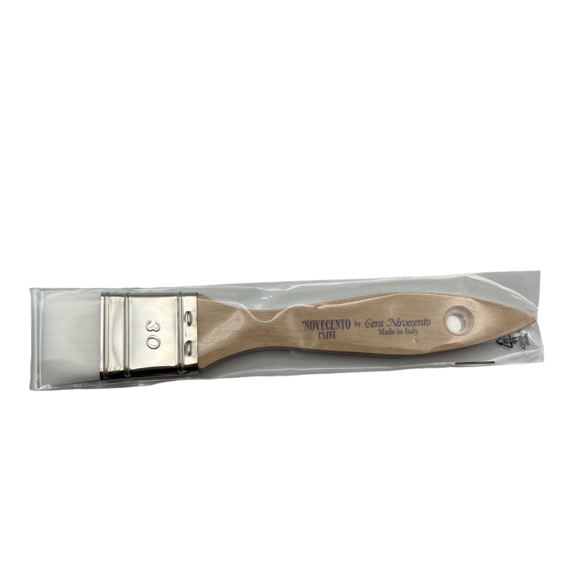 Setola sintetica piatta e corta, manico in legno naturale con l'inconfondibile marchio Novecento paint.
