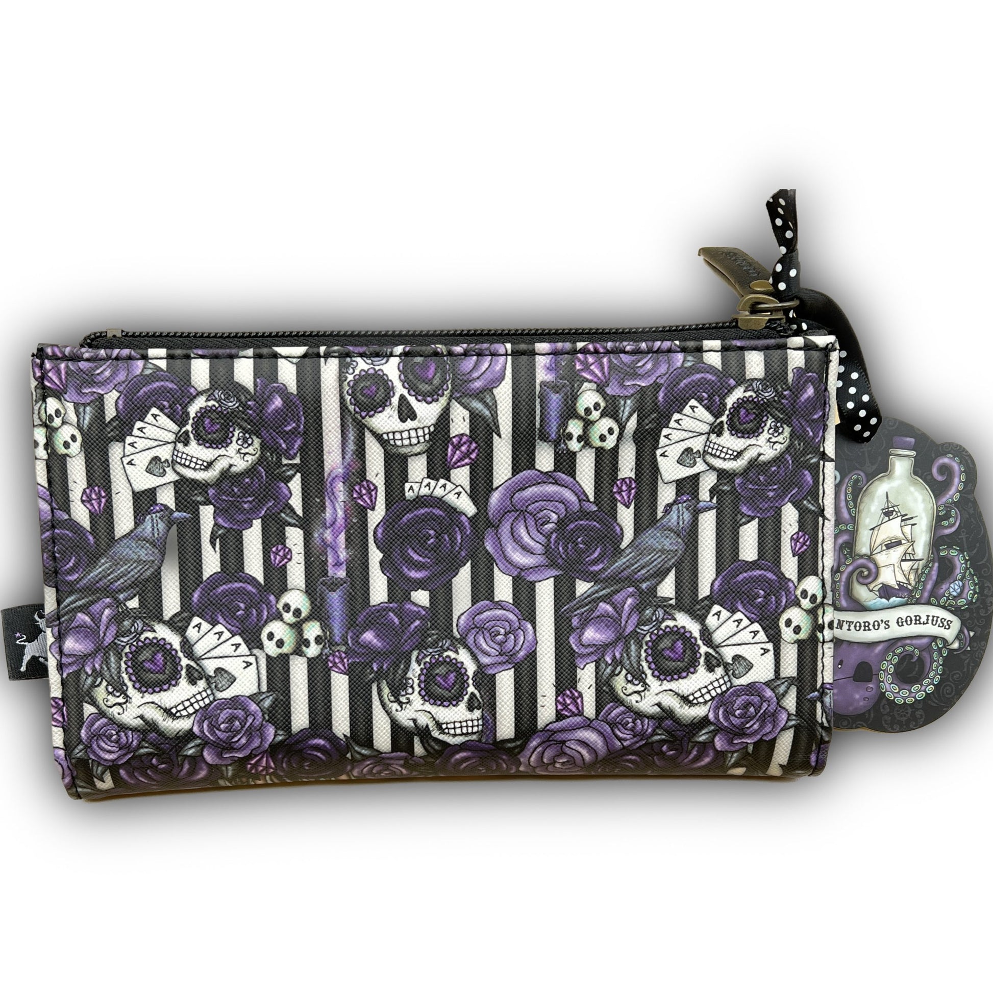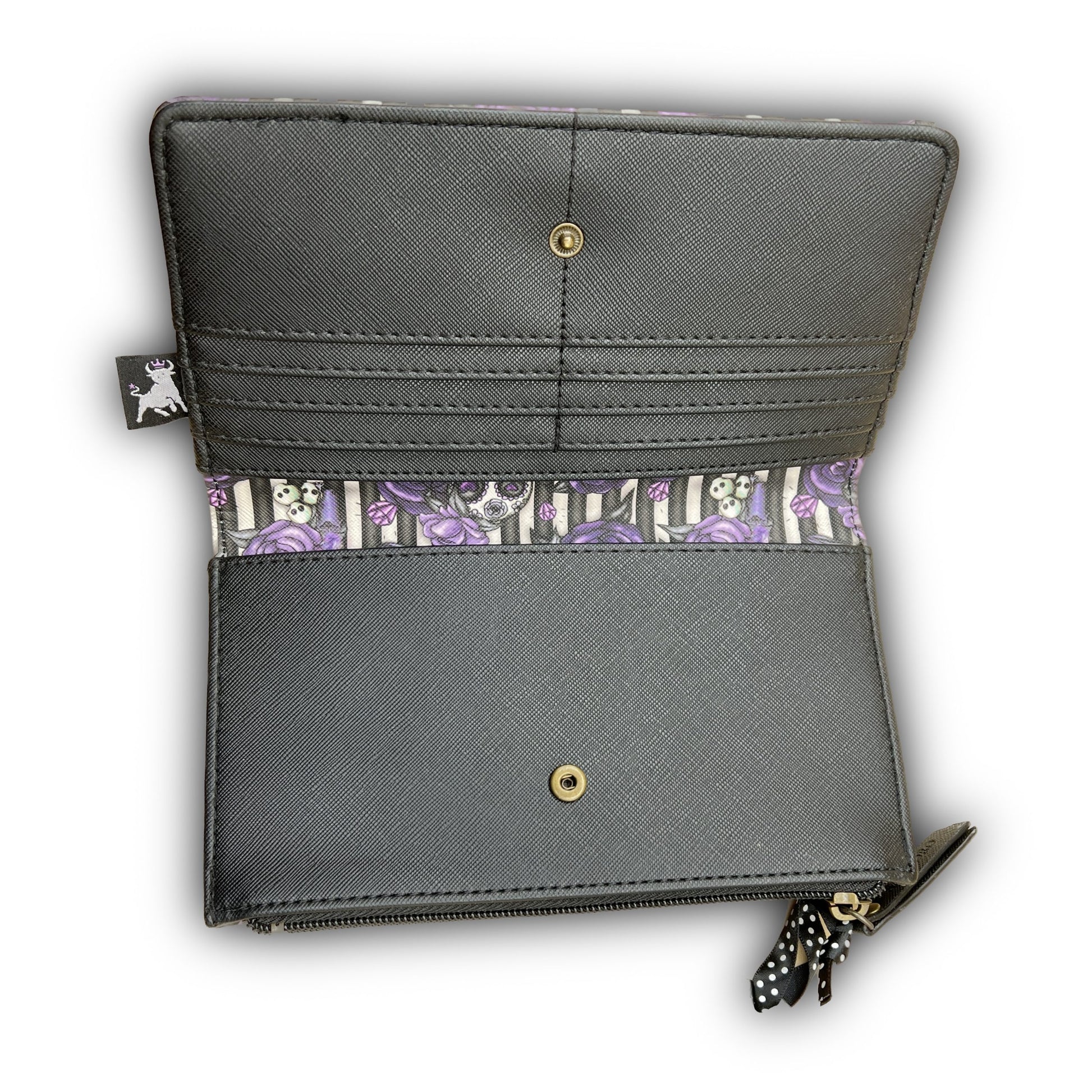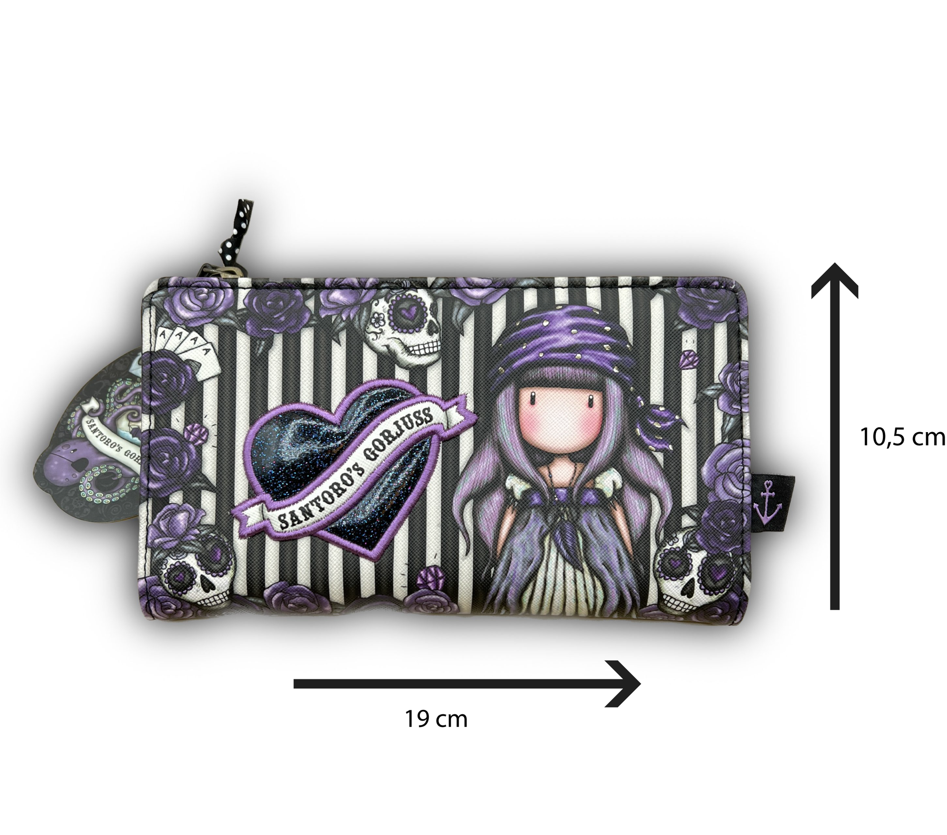 Essenziale da borsetta, questo portafoglio ripiegato ha 8 scomparti per carte e una tasca con zip per spiccioli. Splendidamente decorato con opere d’arte Sea Nixie e rifinito con toppa con logo glitterato
