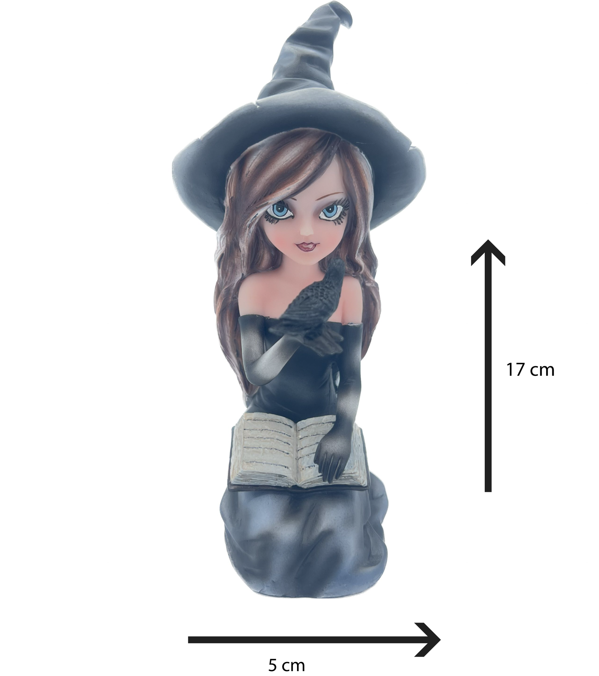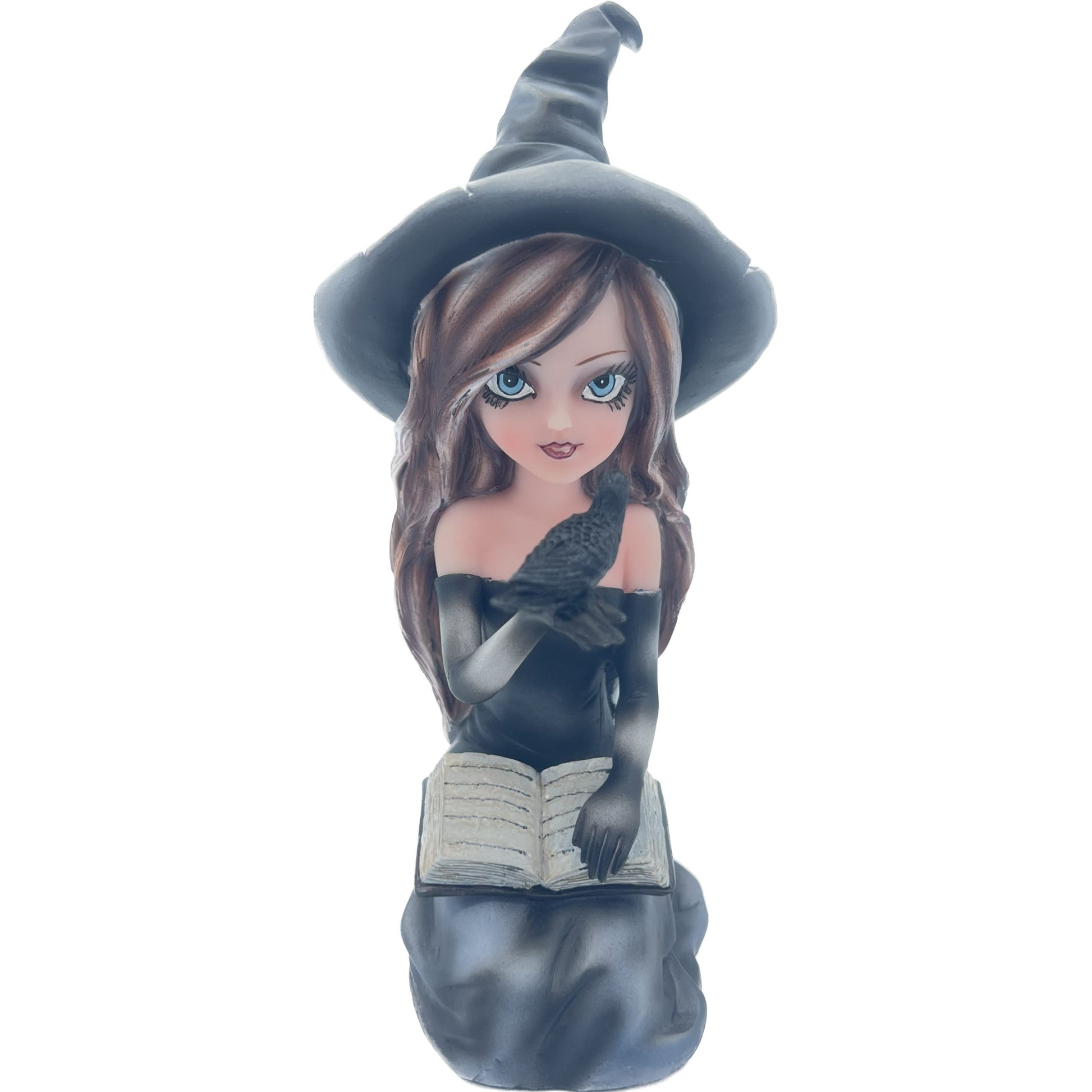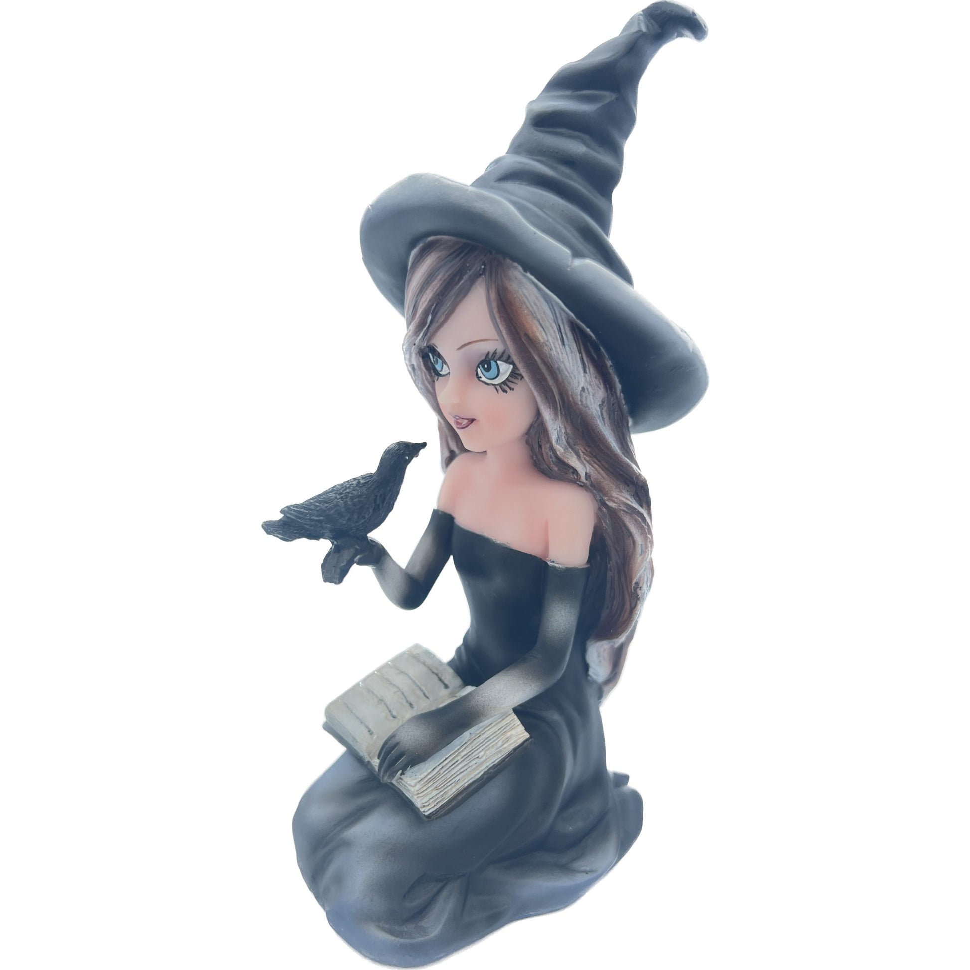 Streghetta che tiene in mano un corvo.